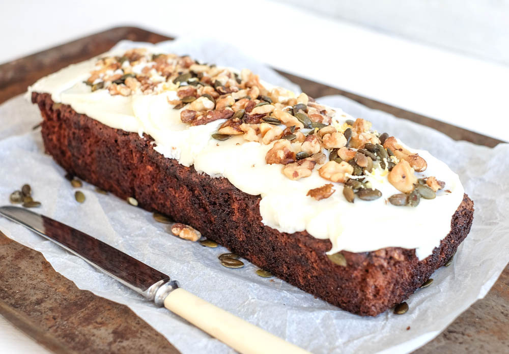 A traditional family recipe! Moist, crunchy cake with hints of cinnamon and available with buttercream or cream cheese icing.